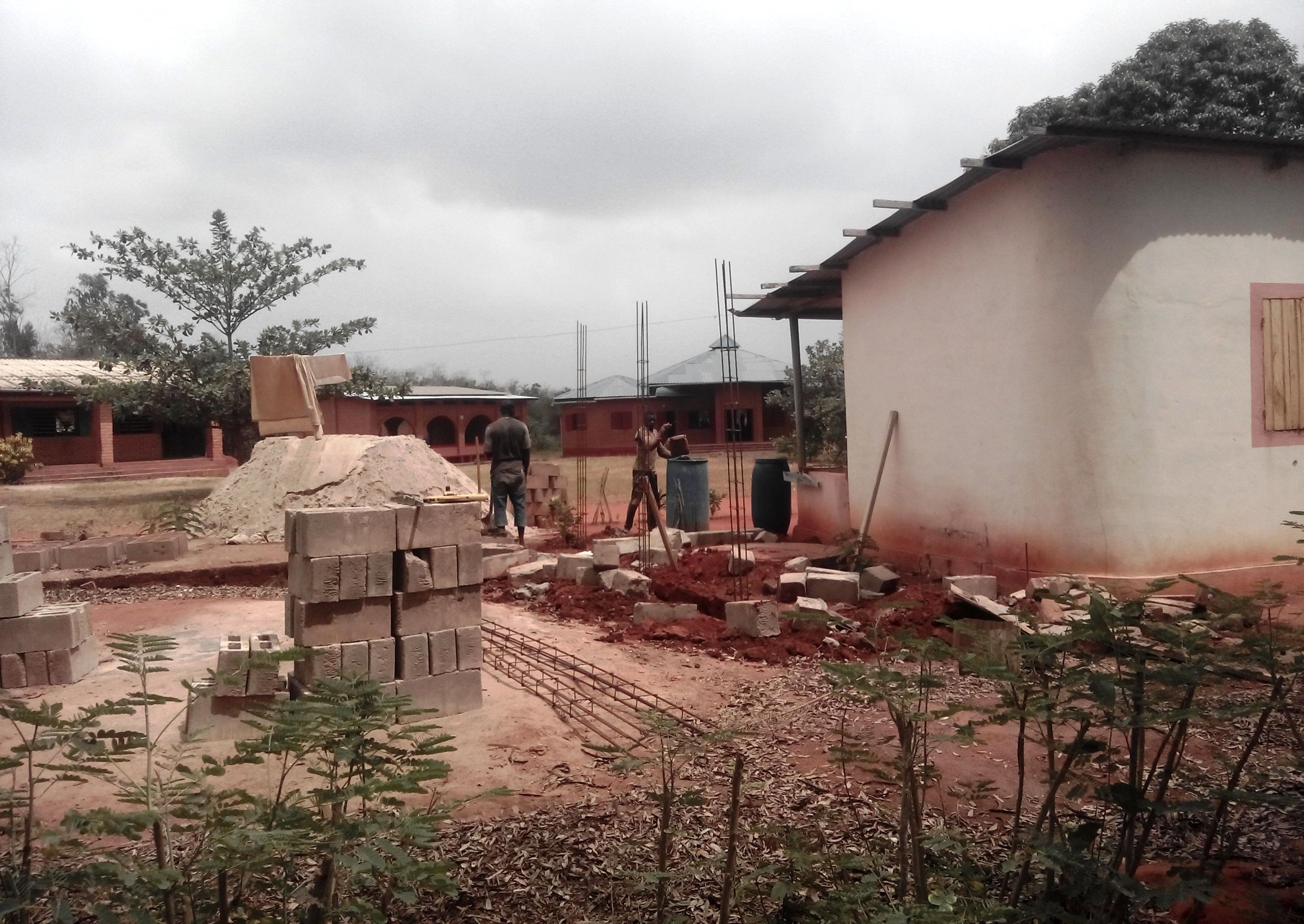 Vor wenigen Tagen begonnen hat auch die Renovierung und der Ausbau der bestehenden Lehrerwohnhäuser. Neben der Verlegung von Fliesen und dem Anbau eines Duschhäuschens, werden kleine Terrassen angebaut, da sich das Leben in Togo überwiegend draußen abspielt.