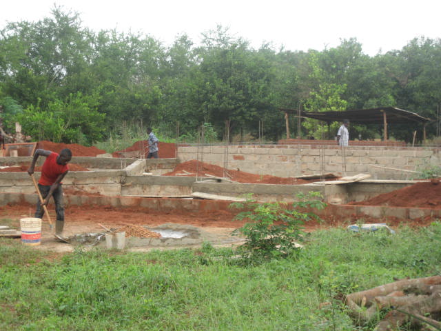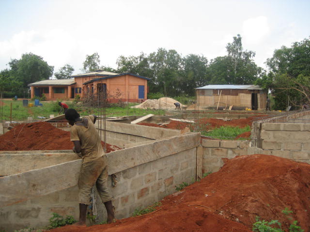 Die Grundmauern unseres neuen Schulgebäudes stehen und täglich geht es nun sichtbar voran. Mehr als tausend Steine wurden hierfür bereits aus Zement und unserer eigenen Erde sowie dem Wasser aus unserem Solarbrunnen vor Ort hergestellt und verbaut.